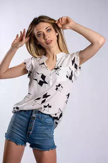 Esta blusa es combinable para cualquier ocasión, ideal para un estilo casual y fresco. Su diseño elegante y las mangas voladas le aportan un toque único a tu outfit.