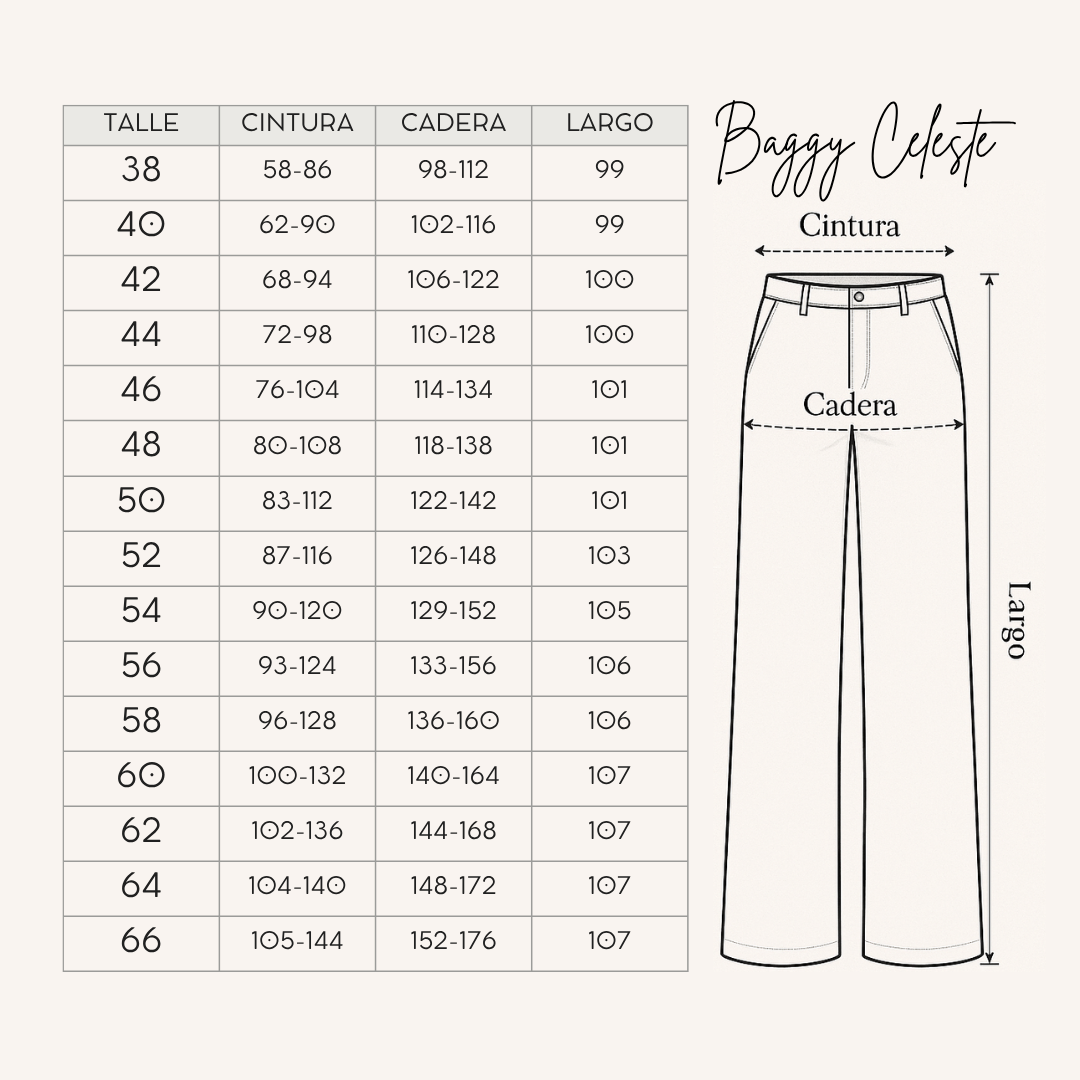 Talles inclusivos: Disponible del talle 36 al 66.
