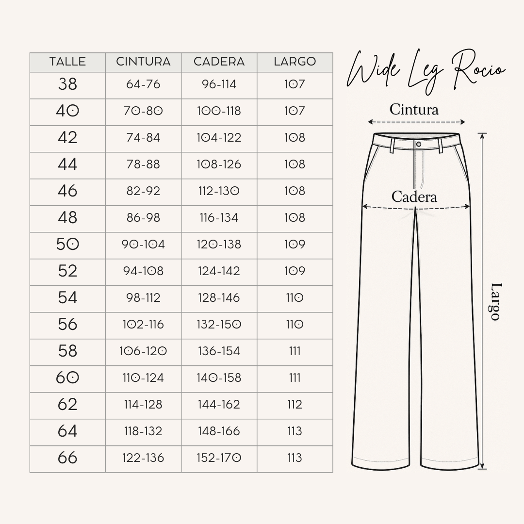 • Corte Wide Leg: Pierna ancha y largo que aporta una estética contemporánea y versátil, perfecta para cualquier ocasión.