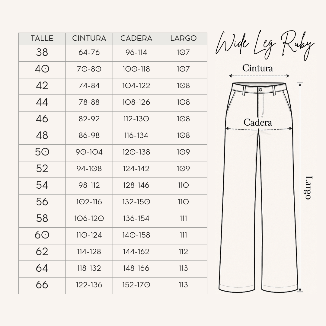 Corte Wide Leg: Pierna ancha y largo que aporta una estética contemporánea y versátil, perfecta para cualquier ocasión.