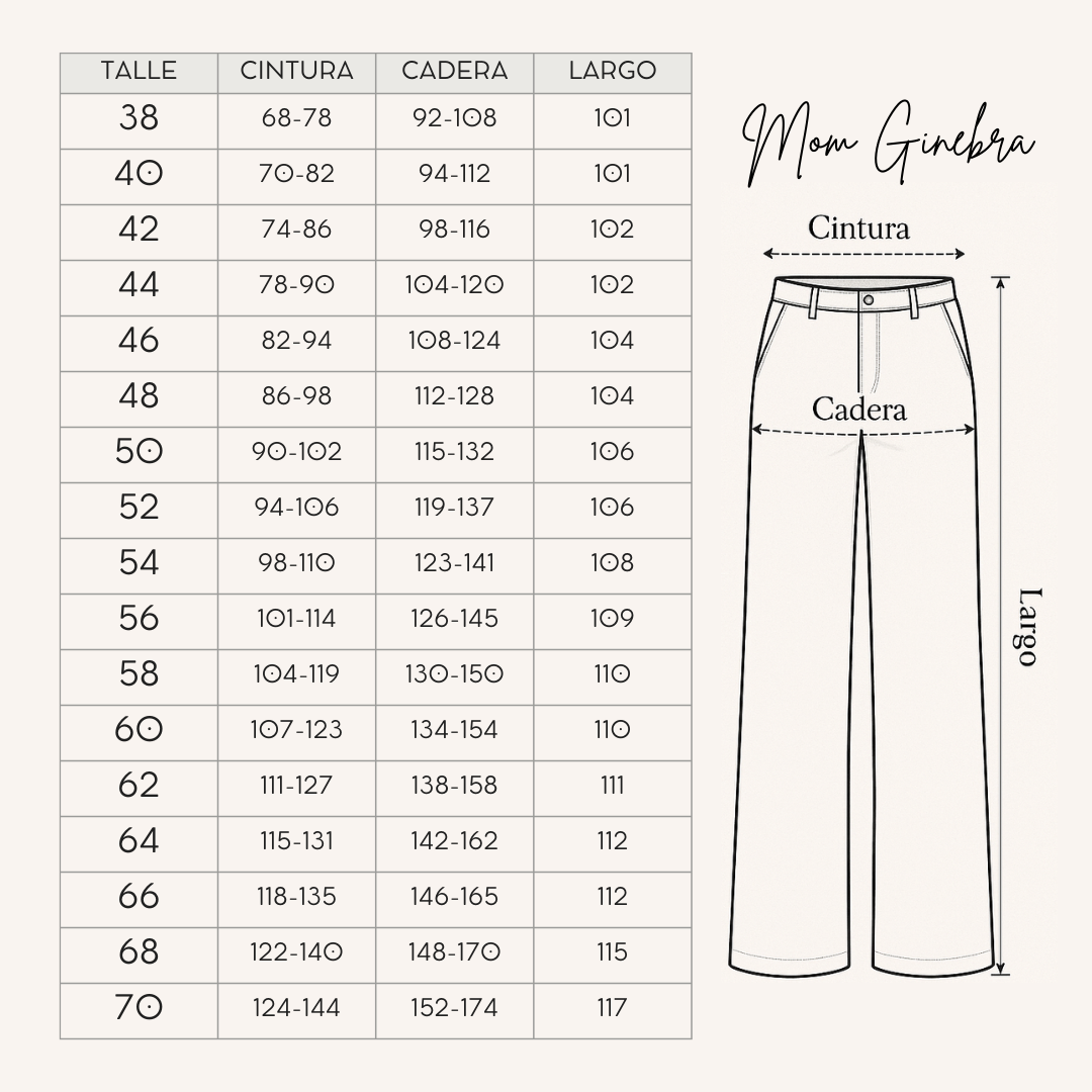 Corte Mom: tiro alto, cadera definida y pierna levemente afusada.