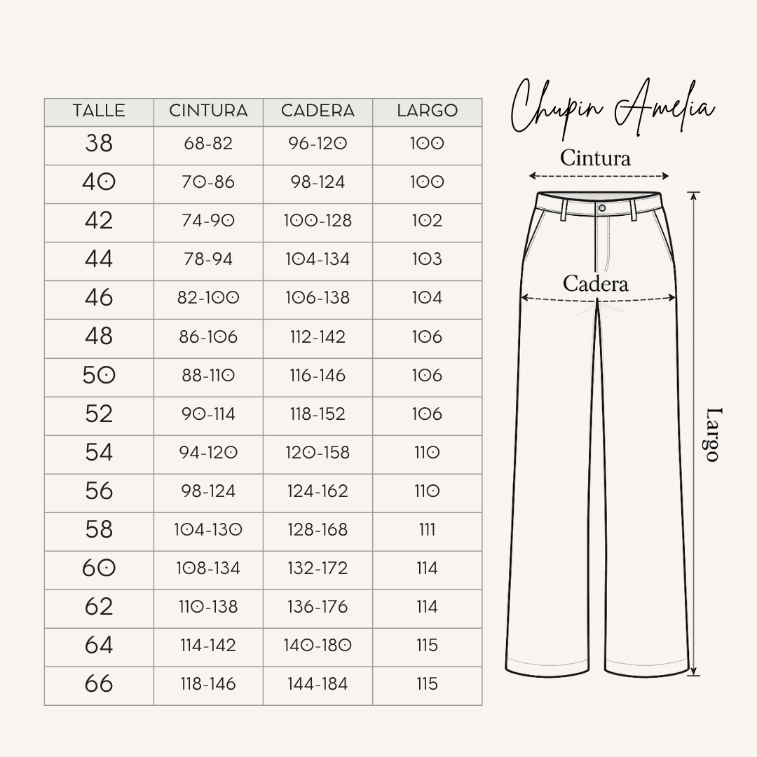 Corte chupín: Ajustado desde la cadera hasta el tobillo, para una silueta definida.